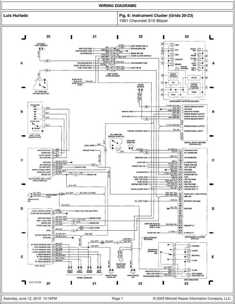 Chevrolet Blazer 91 Instrument Cluster Wiring Diagram